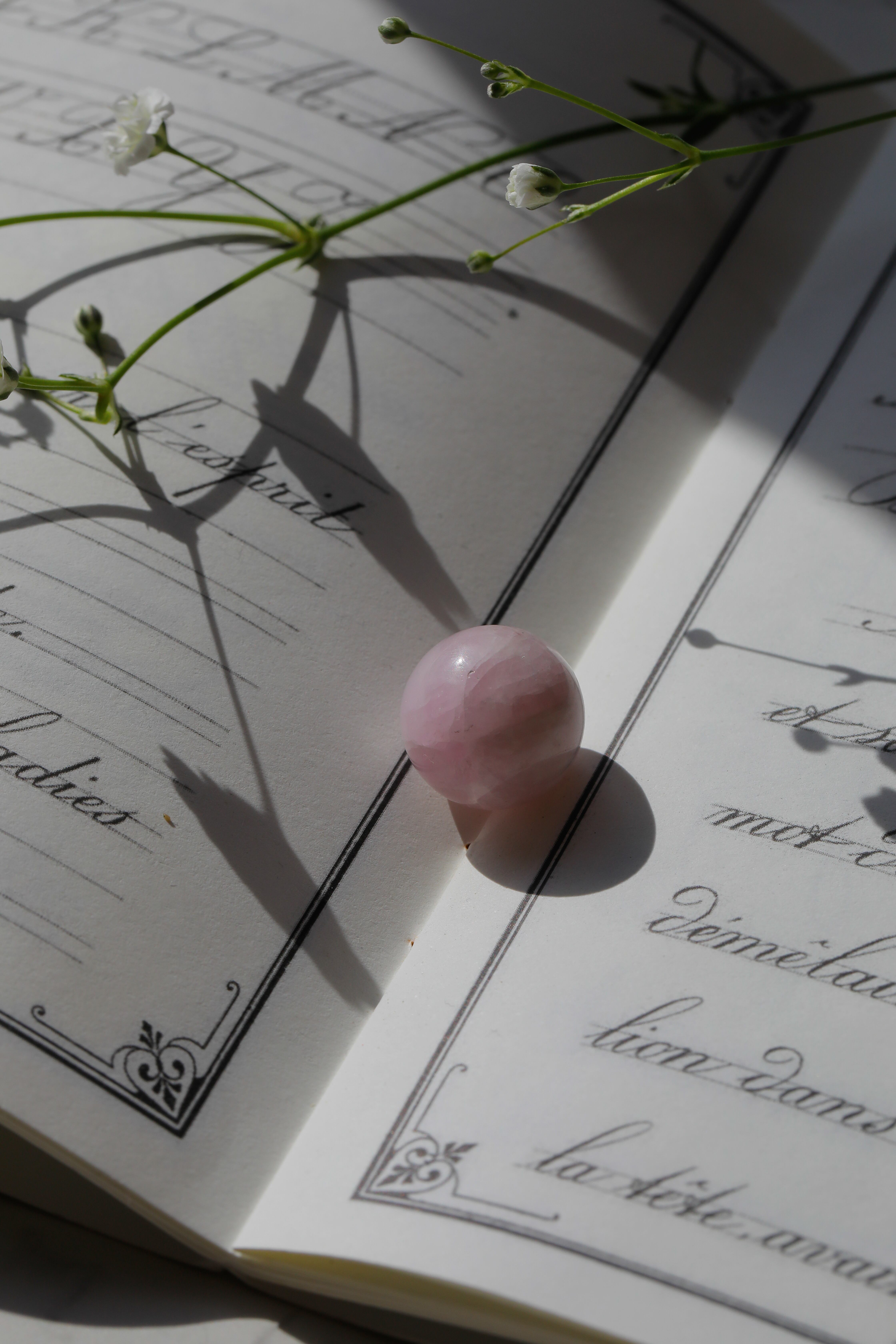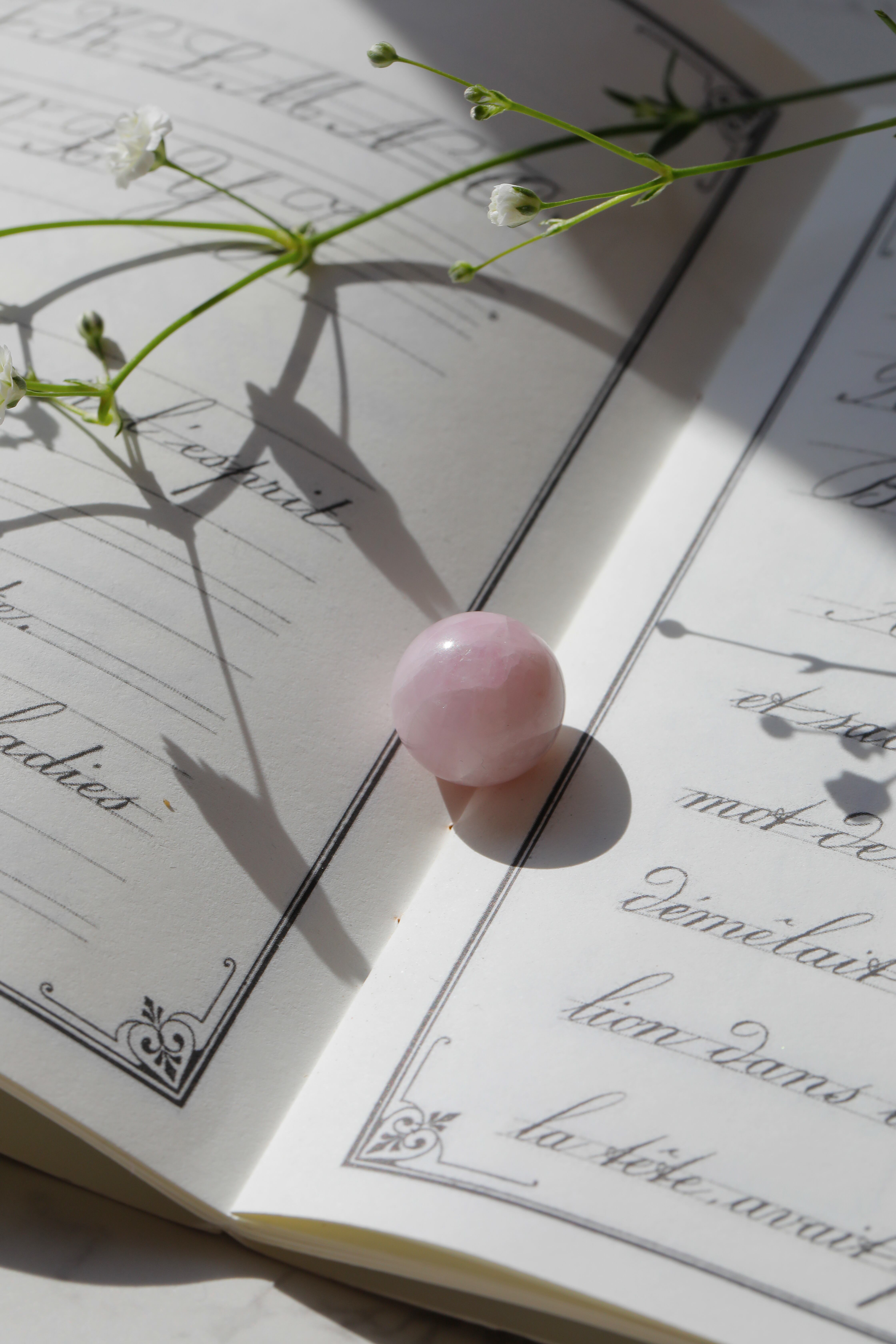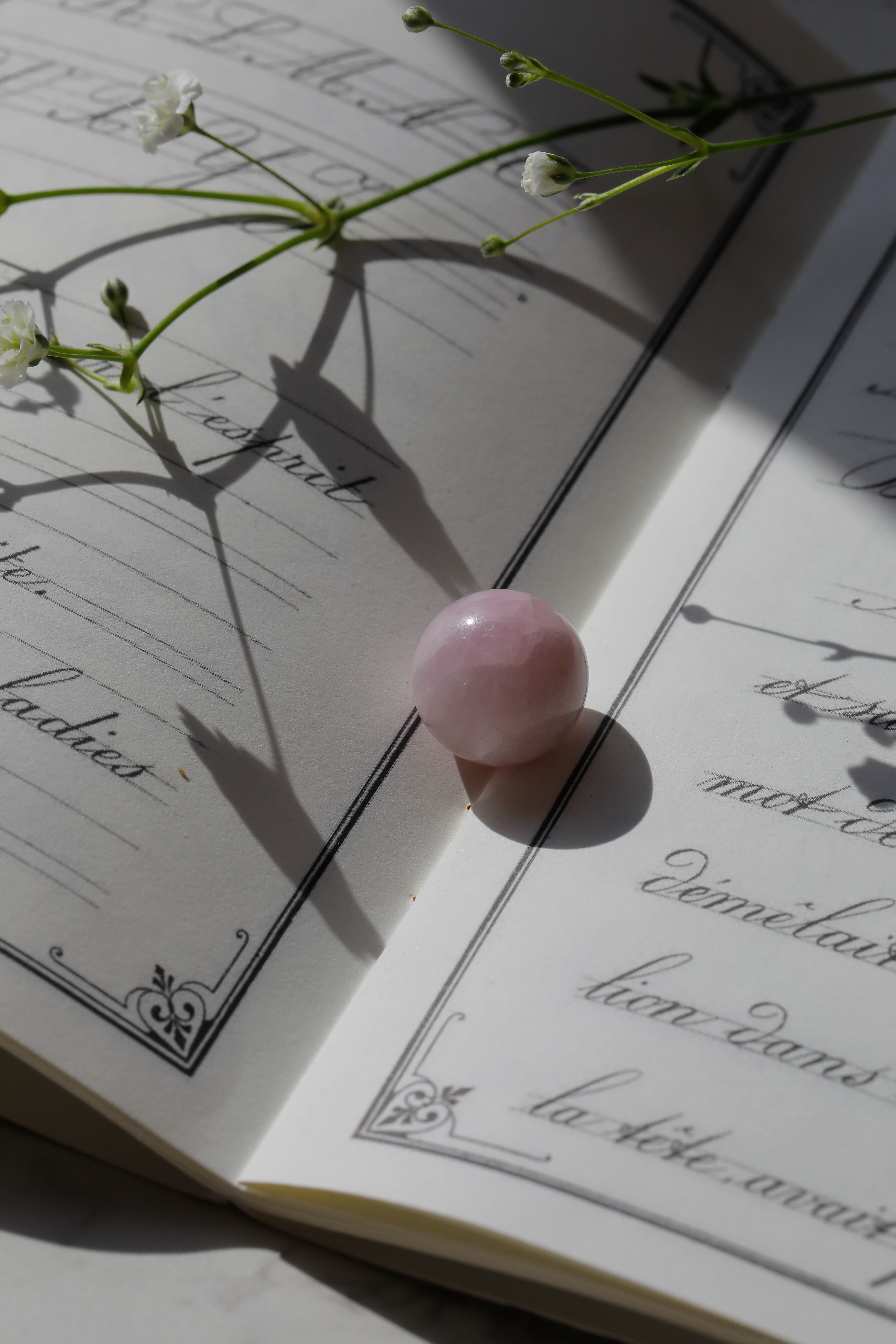 小さなクンツァイトのスフィアです。