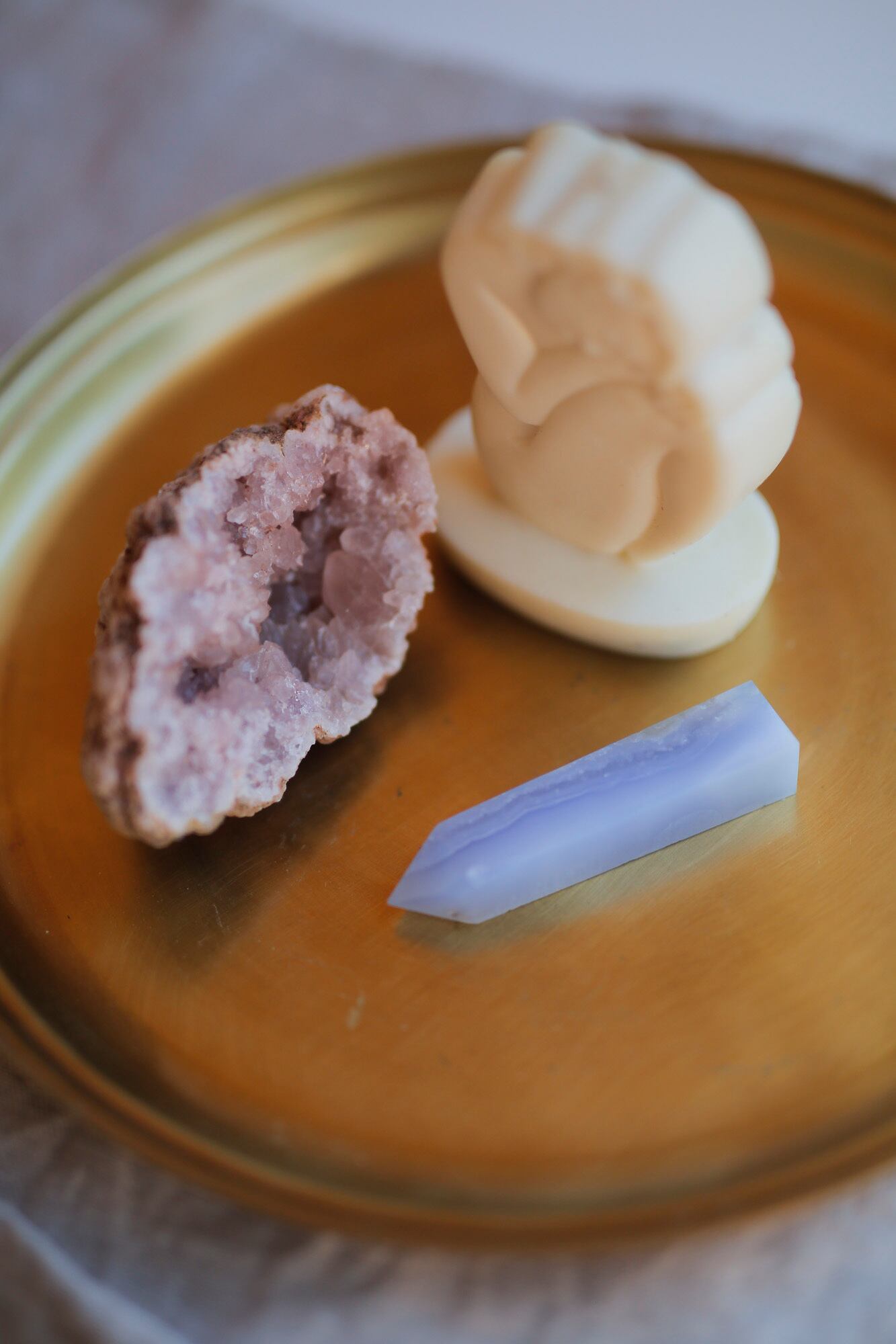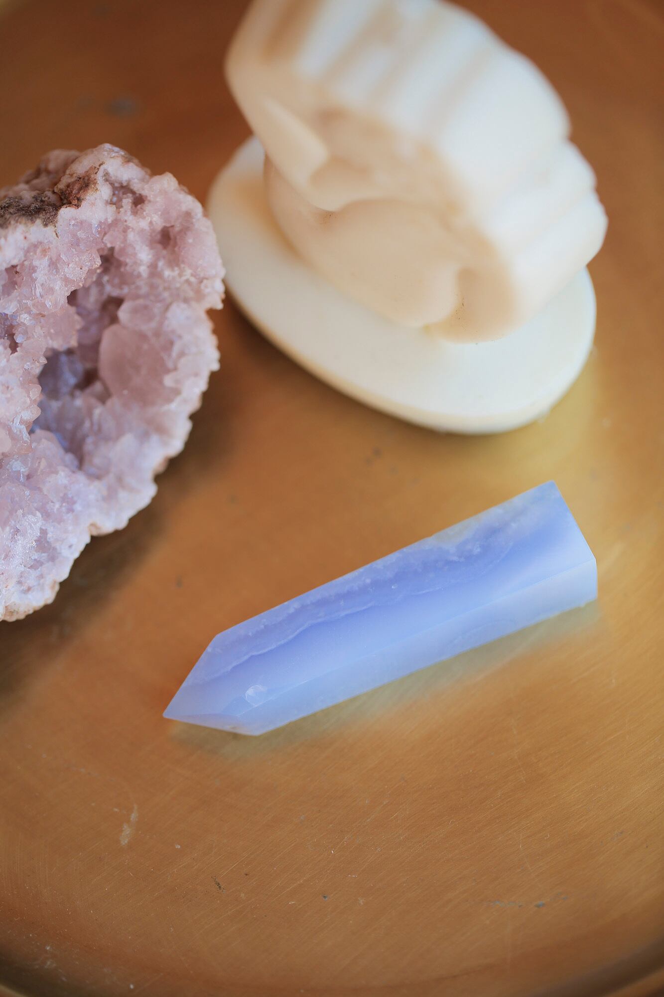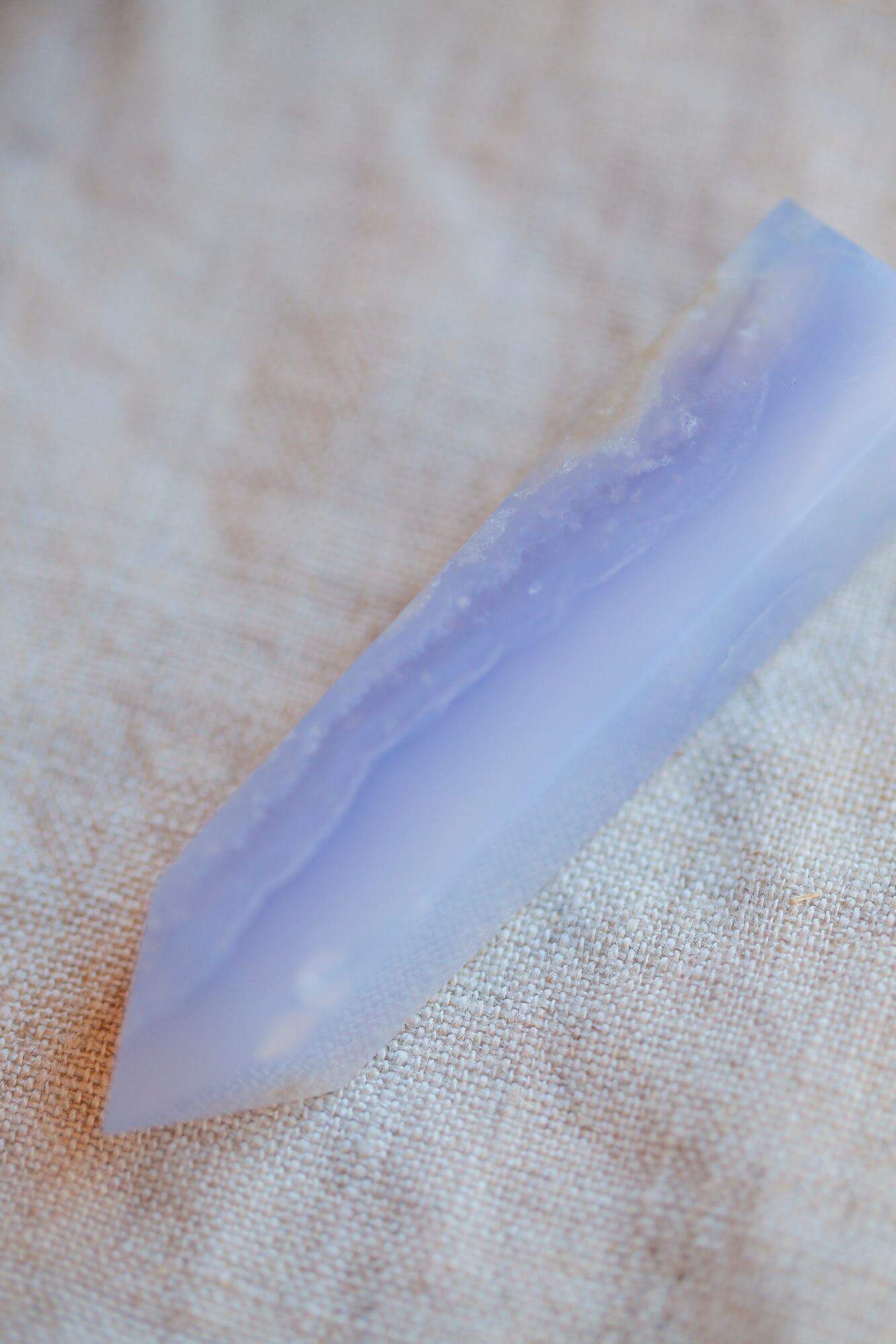 優しい色味の、小さなブルーレースアゲートのタワー。