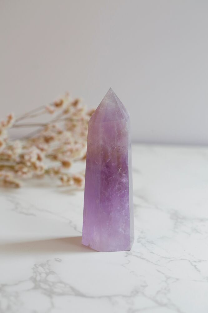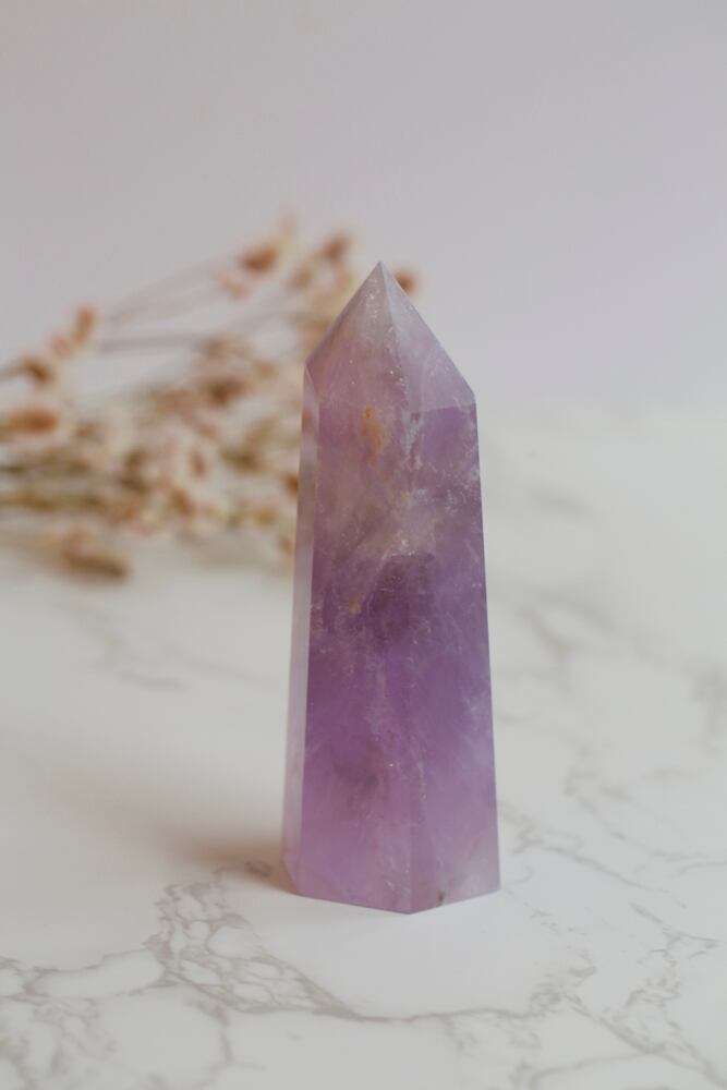 虹が見られるアメトリンのタワーです。